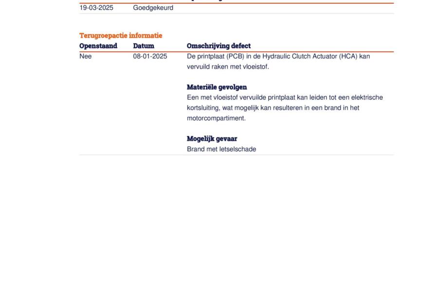 Onderhoudshistorie bekend
